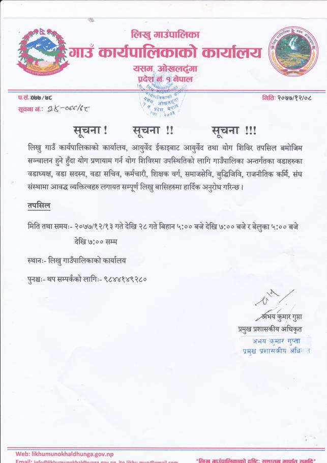 आयुर्वेद तथा योग शिविर सञ्चालन सम्बन्धमा ।
