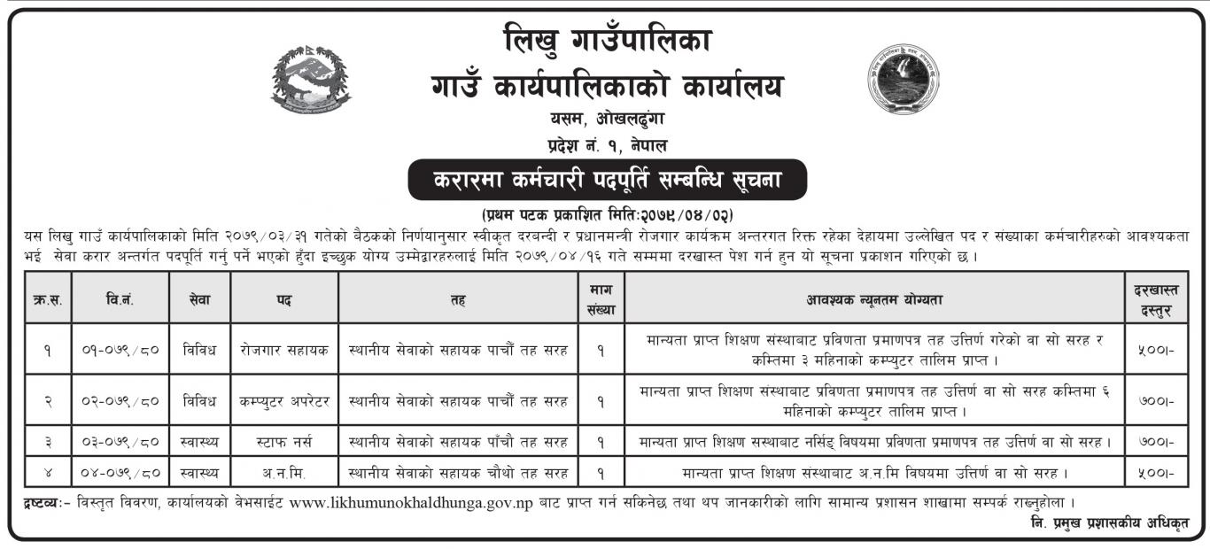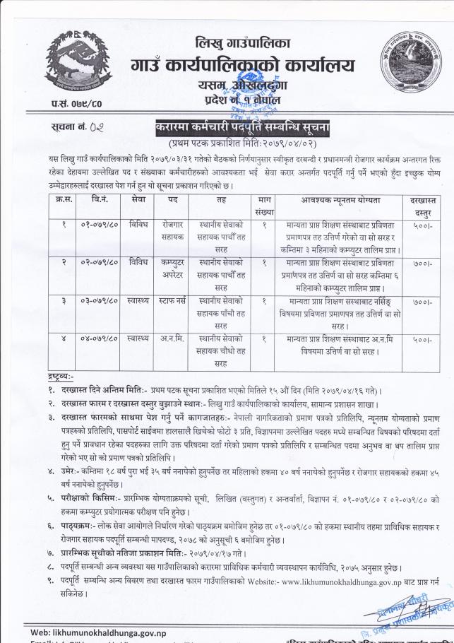 करार सेवामा कर्मचारी आवश्यकता सम्बन्धी सूचना ।