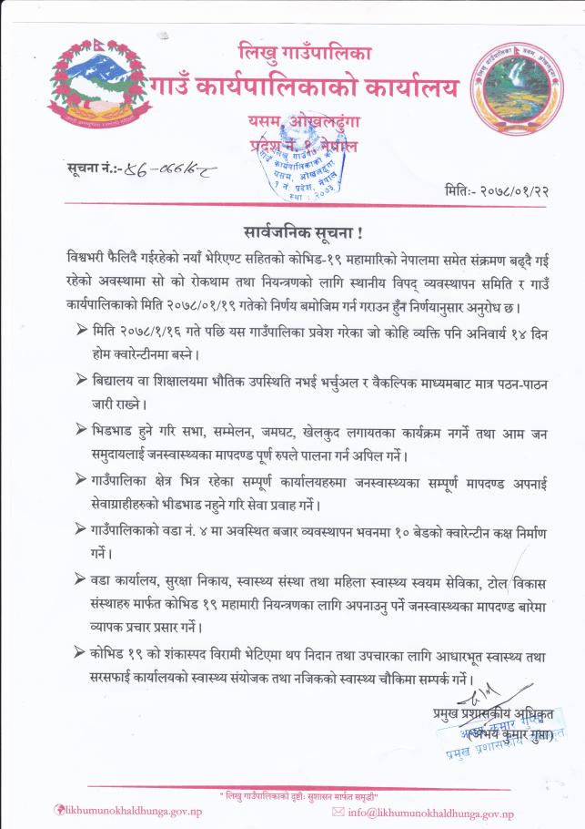 कोभिड १९ सम्बन्धित अत्यन्त जरुरी सार्वजनिक सूचना ।