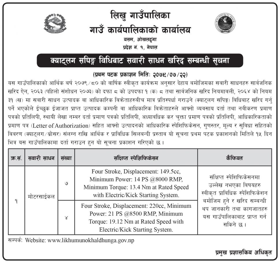 क्याटलग सपिंग विधिबाट सवारी साधन खरिद सम्बन्धी सूचना ।