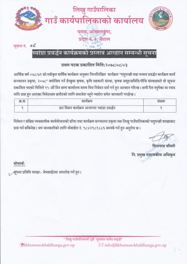 » च्यांग्रा प्रवर्द्धन कार्यक्रमको प्रस्ताव आव्हान सम्बन्धी सूचना ।