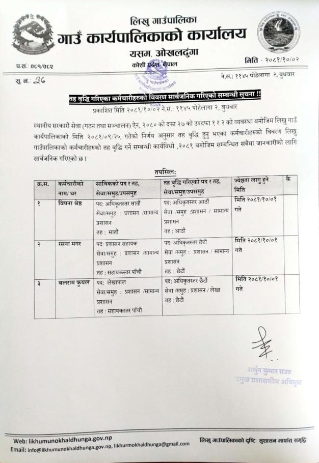 तह वृद्धि गरिएका कर्मचारीहरुको विवरण सार्वजनिक गरिएको सम्बन्धी सूचना !!!