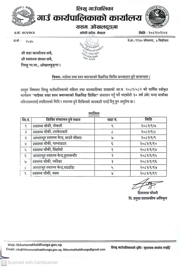 » पाठेघर तथा स्तन क्यान्सरको स्क्रिनिङ शिविर सञ्चालन हुने सम्बन्धमा ।