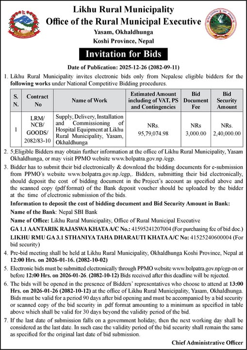 सार्वजनिक खरिद/बोलपत्र सूचना