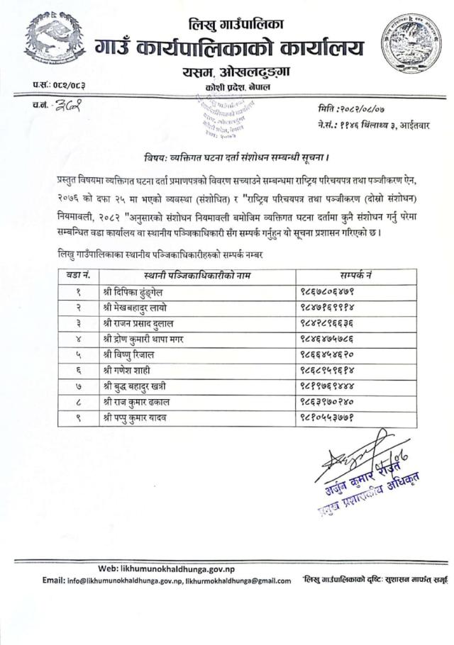 व्यक्तिगत घटना दर्ता संशोधन सम्बन्धी सूचना !!!!